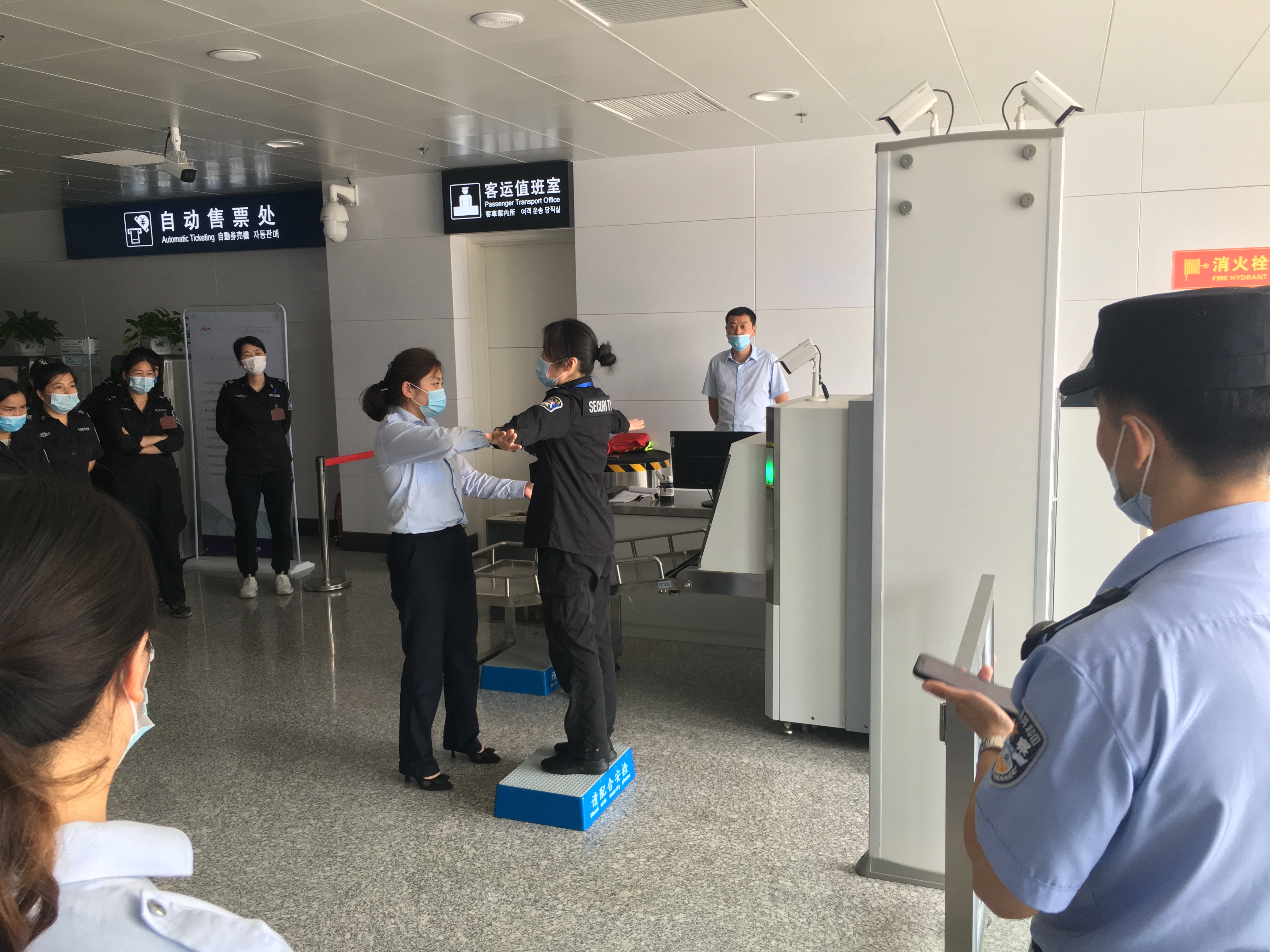 四、現(xiàn)場演練,現(xiàn)場演練時(shí)王所長針對(duì)目前安檢工作中所存在的問題一一指出,并提出了要求。手檢太敷衍,流于形式,重點(diǎn)部位(腰部、腿部、腳踝、頭部等)沒有重點(diǎn)檢查,要求加強(qiáng)手檢禮儀和規(guī)范,做到重點(diǎn)部位重點(diǎn)檢查。液體漏查情況嚴(yán)重,要求做到逢包必檢,逢液必查,逢疑必問,包內(nèi)液體一定要開包檢查,檢查方式有聞、看、搖、試、燒等?,F(xiàn)場處置不規(guī)范,當(dāng)查出危險(xiǎn)品或禁帶品時(shí)要及時(shí)收起,放到規(guī)定處置地點(diǎn),不得留放在處置臺(tái),以免造成其他不良后果。現(xiàn)場演練通過城市動(dòng)車人員和國鐵人員相互人身檢查和過包識(shí)圖的方式進(jìn)行,大家在這過程中相互交流,王所長針對(duì)演練過程中存在問題進(jìn)行一一點(diǎn)評(píng)。