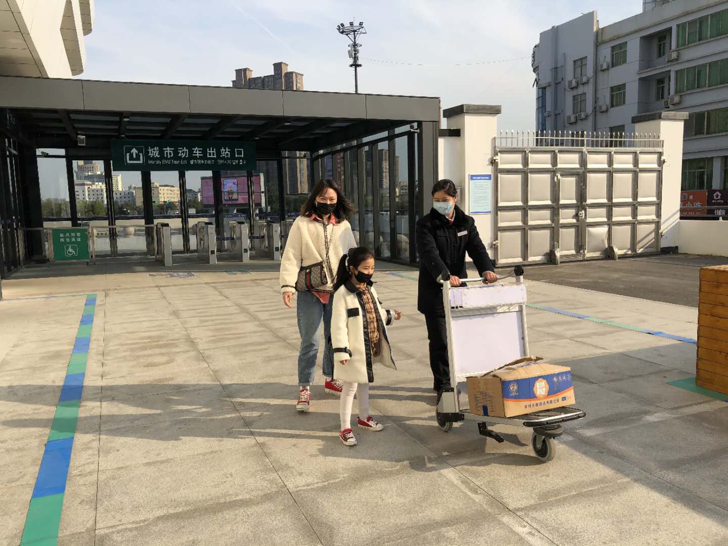 4月25日下午,乘坐第一班S3109的旅客大多數(shù)都是出行游玩的乘客。和往常一樣,城市動(dòng)車組的站務(wù)員們?cè)诟髯缘膷徫簧现凳刂?,這時(shí)一位年輕的母親帶著三歲的孩童,懷里還抱著一個(gè)很沉的大紙箱很吃力,緩慢地往站臺(tái)里走來(lái)。站務(wù)員劉倍倍趕忙上前接下她手中的大紙箱,減輕了她很大的負(fù)擔(dān)。在她出示連易通二維碼和進(jìn)行完安檢后,站務(wù)員韓雪和劉倍倍幫她把紙箱放在座位旁。車次開始檢票時(shí),站務(wù)員們將紙箱放在站內(nèi)的行李推車上,劉倍倍將其一直送到車廂內(nèi)。這位母親連聲道謝說(shuō):“太麻煩你們了,你們城市動(dòng)車的服務(wù)真是太貼心了!”劉倍倍微笑的說(shuō):“能幫到您就是我們最開心的事情?!?/span>