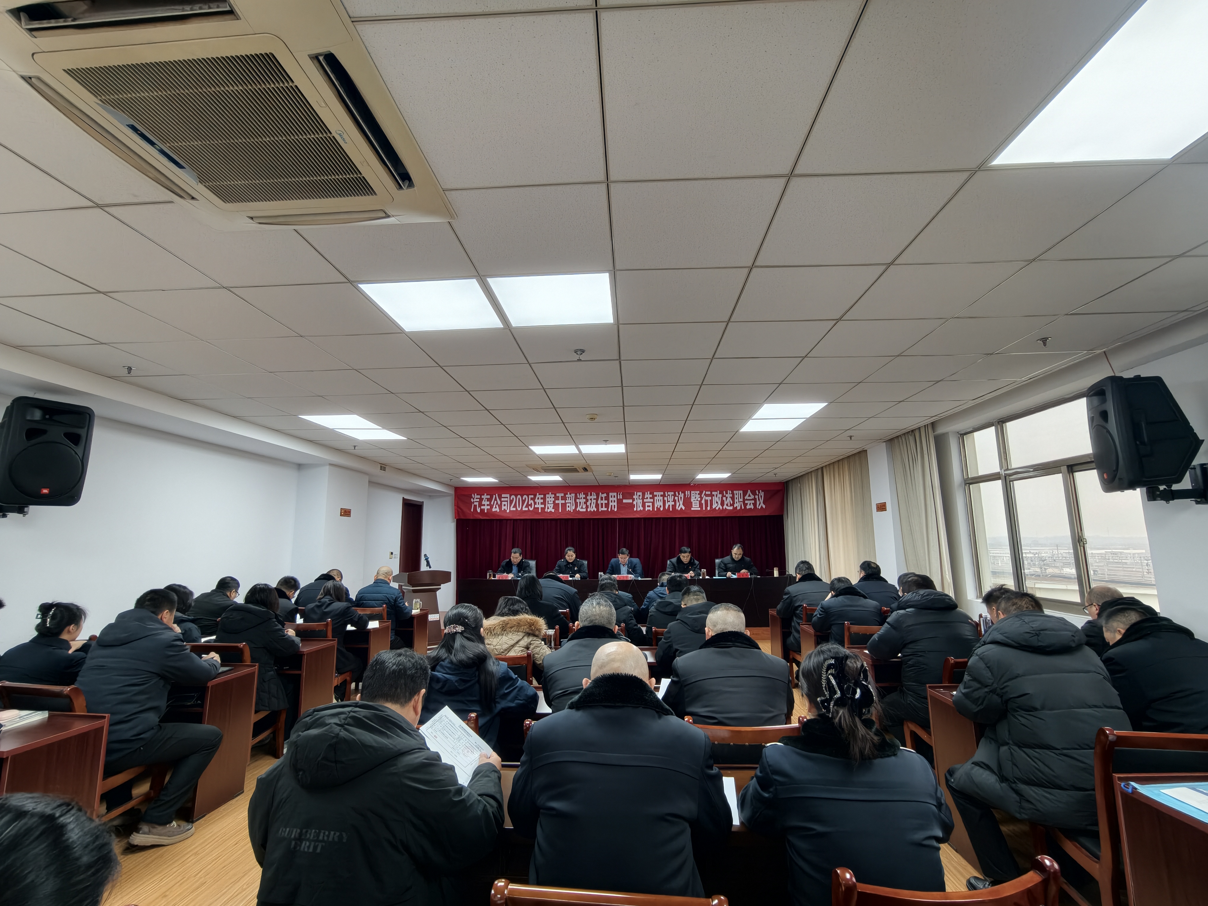 1月14日,汽車公司召開2025年度干部選拔任用“一報告兩評議”暨述職評議會議。公司黨委書記、董事長石慶勇主持會議,公司領(lǐng)導(dǎo)班子、中層干部、“兩代表一委員”及黨員群眾代表50余人參加會議。