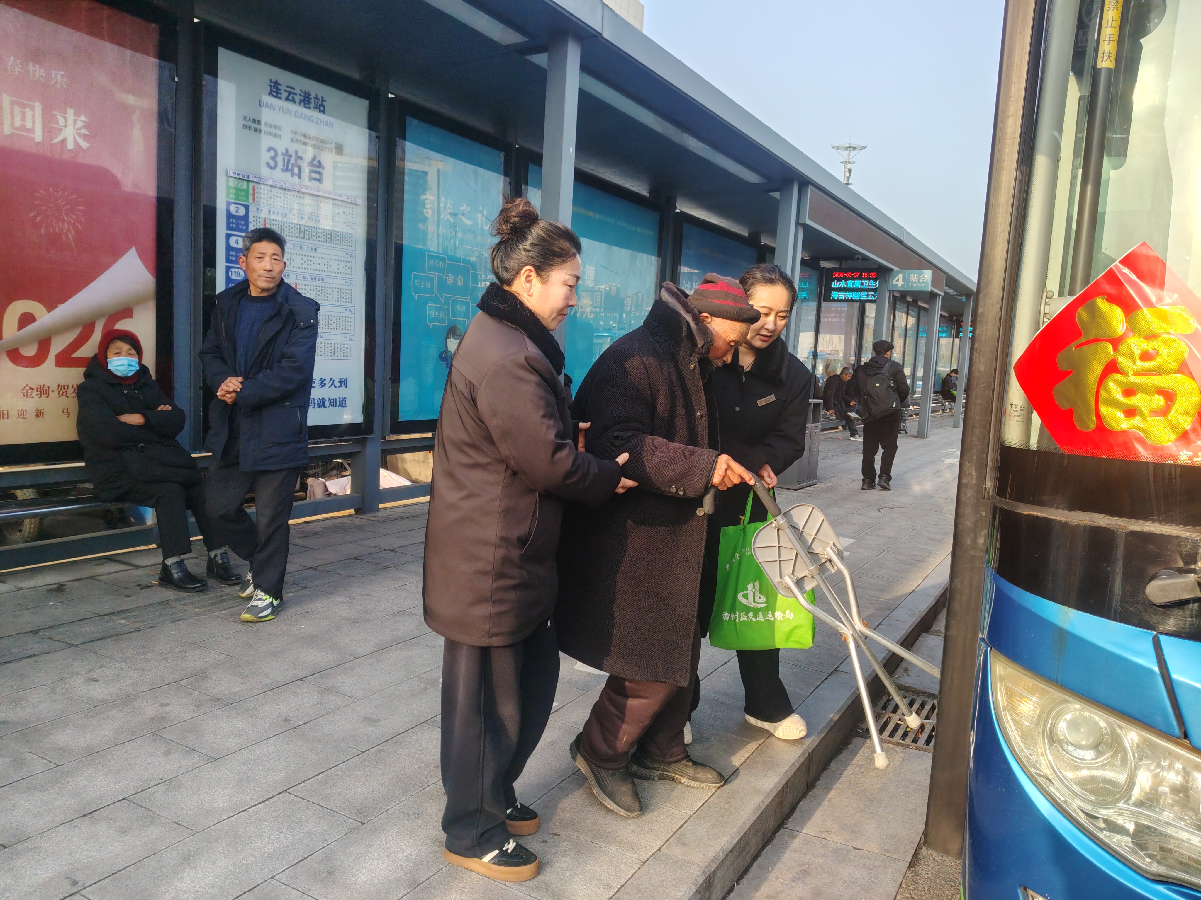 三月港城,春寒未盡。當(dāng)天上午,一位拄著助行器的老大爺緩緩走進(jìn)售票大廳,神情焦急地來到窗口詢問:“同志,請問去新壩的4路公交車是在這兒坐嗎?”售票員耐心解答,告知公交站臺位于高鐵站旁,距車站約500米。聽聞此言,老人面露難色表示他獨(dú)自一人到市區(qū)看病,因不熟悉路況,一時不知如何前往。