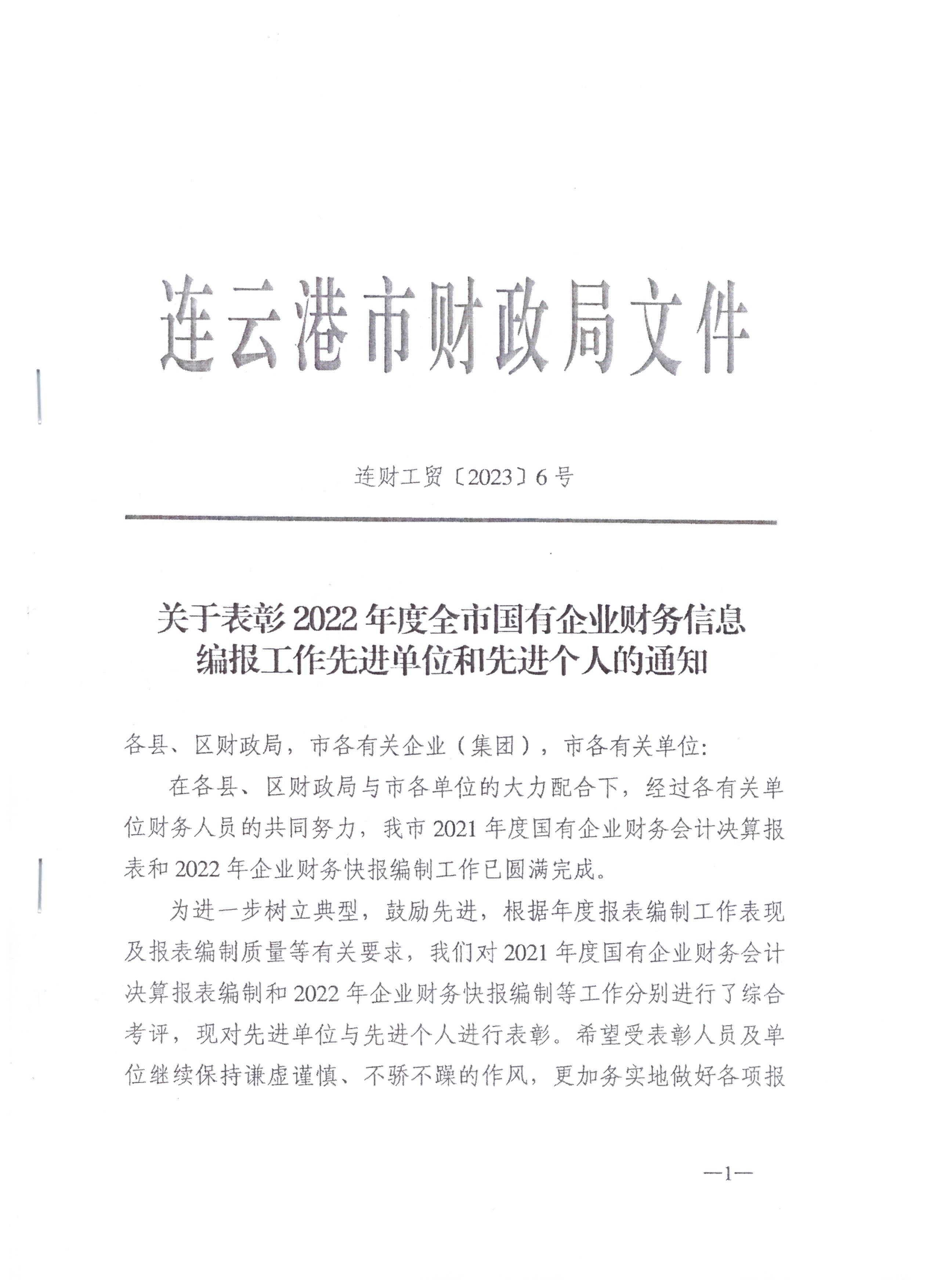 日前,從連云港市財(cái)政局下發(fā)的關(guān)于2022年企業(yè)財(cái)務(wù)快報(bào)編制工作綜合考評(píng)文件獲悉,集團(tuán)被評(píng)為全市財(cái)務(wù)信息工作先進(jìn)單位,集團(tuán)財(cái)務(wù)融資部聶丹被評(píng)為財(cái)務(wù)信息工作先進(jìn)個(gè)人。