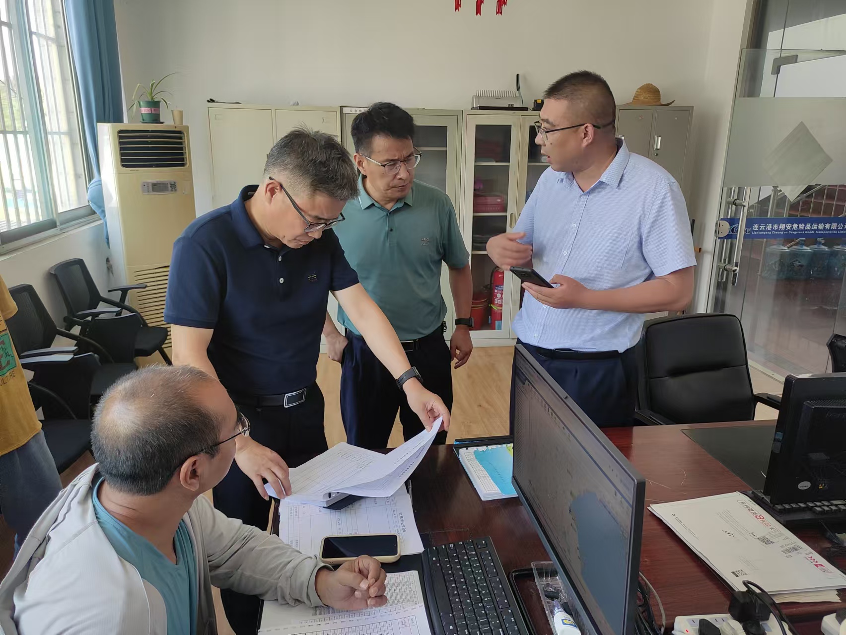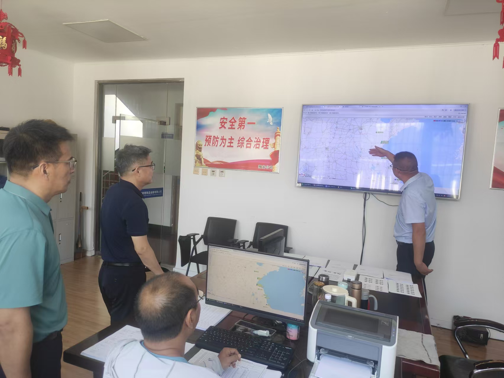 隨后,檢查組一行來(lái)到了翔安?;愤\(yùn)輸公司。在主防監(jiān)控平臺(tái)前,仲偉濤仔細(xì)查看了?;?chē)輛的實(shí)時(shí)監(jiān)控?cái)?shù)據(jù),詢(xún)問(wèn)了車(chē)輛運(yùn)行狀態(tài)和安全管理措施。他要求公司負(fù)責(zé)人要充分利用科技手段,加強(qiáng)對(duì)危化車(chē)輛的實(shí)時(shí)監(jiān)控和預(yù)警,確保車(chē)輛運(yùn)行安全。