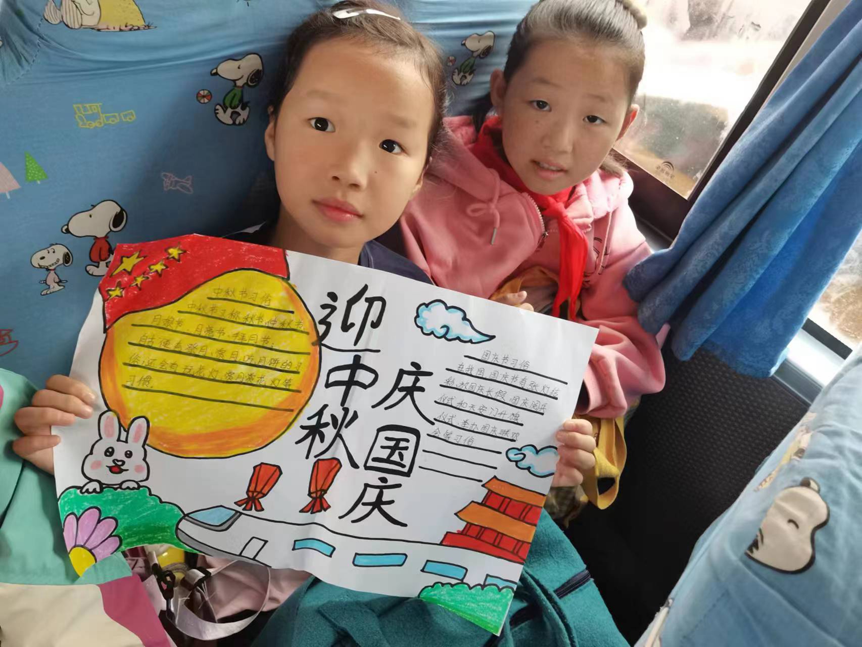 隨后,乘車學生以手抄報的形式向祖國母親慶生。孩子們發(fā)動腦筋用自己靈巧的雙手創(chuàng)作出了一張張精美的手抄報,以此表達了對祖國母親美好的祝愿。