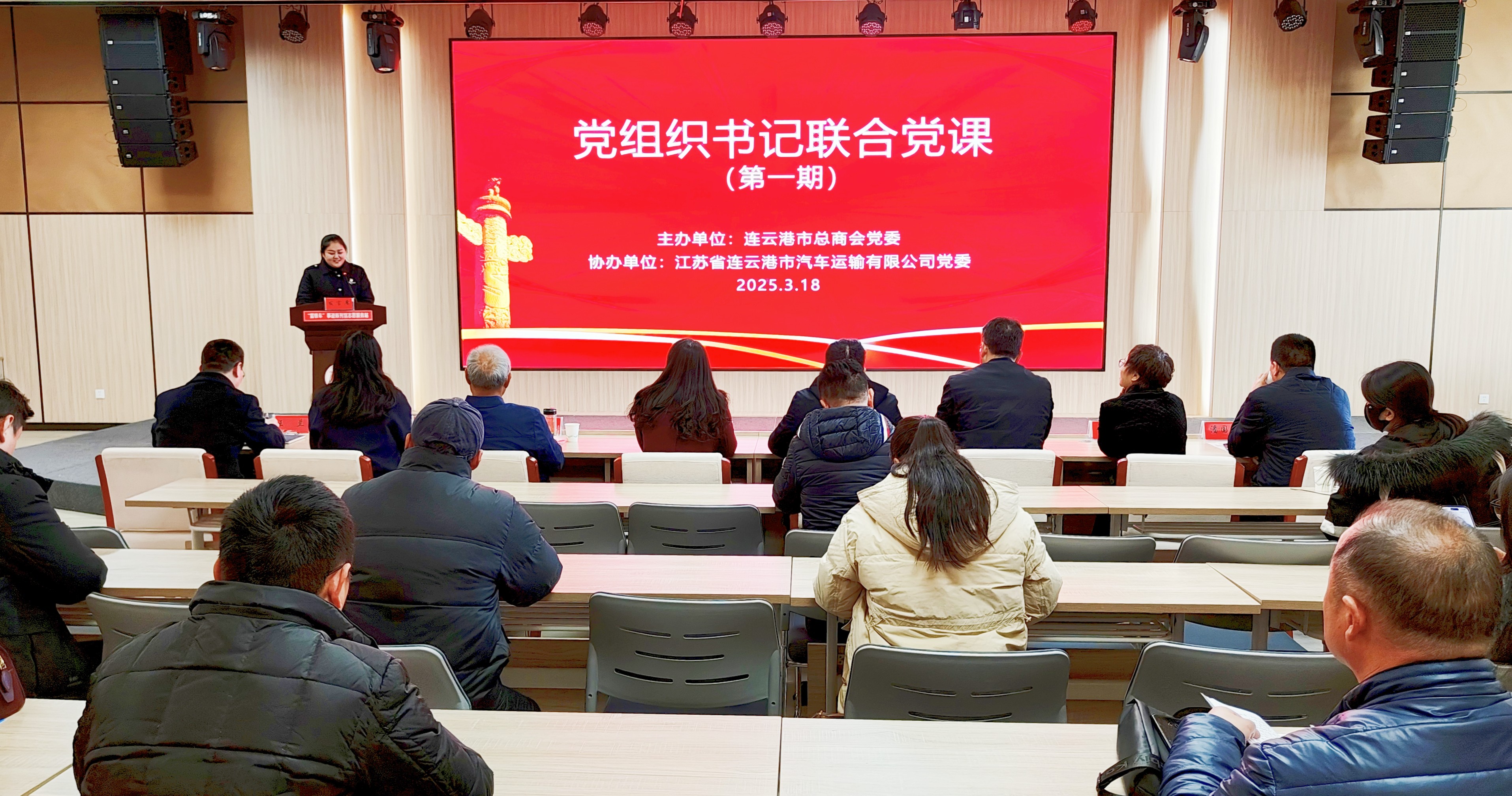 近日,由連云港市總商會黨委主辦,江蘇省連云港汽車運輸有限公司黨委協(xié)辦的以“與雷鋒車同行 爭做發(fā)展先鋒”為主題的直屬商協(xié)會聯(lián)合黨課活動在雷鋒車大講堂舉行。黨的二十大代表、連云港市汽車運輸有限公司黨委副書記權(quán)太琦出席并發(fā)言,市工商聯(lián)直屬商協(xié)會黨組成員、黨務(wù)工作者以及黨員代表參觀活動。