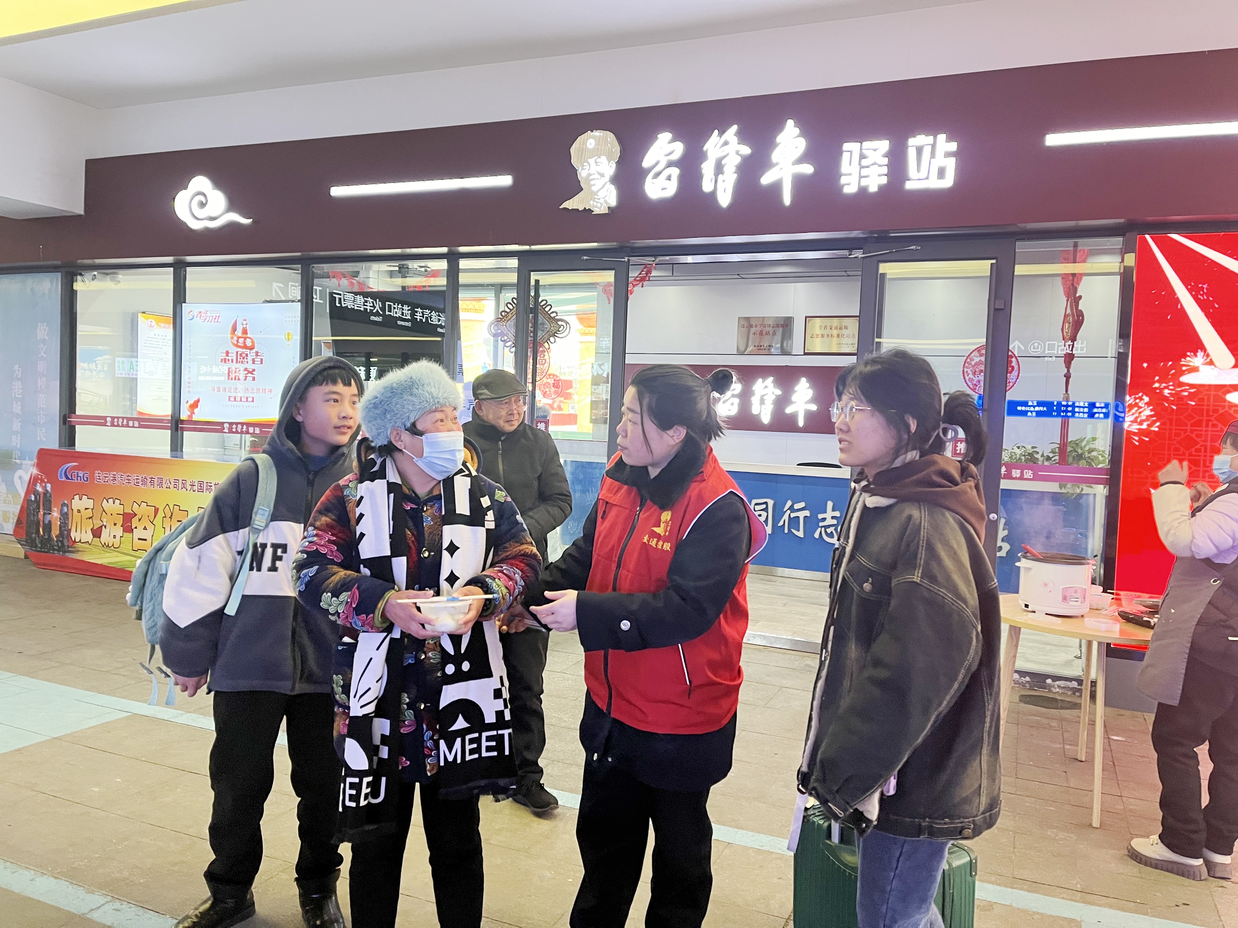 “大姨,行李我?guī)湍茫 薄叭セü骄皡^(qū)可以乘坐游2路,就在火車站旁的公交站臺(tái)坐車?!薄宦暵曈H切的指引,一次次主動(dòng)的援手,溫暖了冬日的旅途。從幫助搬運(yùn)沉重的行李,到耐心解答換乘咨詢;從為疲憊的旅客遞上一杯熱水,到用常備的針線包細(xì)心縫補(bǔ)破損的行囊,“雷鋒車”手們總是想在前頭、做在實(shí)處。她們忙碌的身影穿梭于出站口、公交站與驛站之間,成為節(jié)日里一道流動(dòng)的文明風(fēng)景。