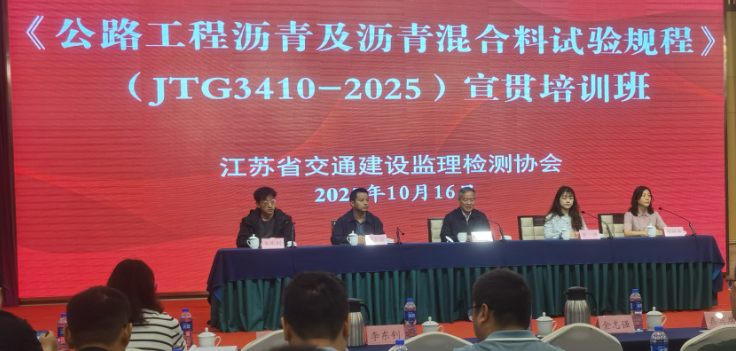 10月15日至17日,由江蘇省交通建設(shè)監(jiān)理檢測協(xié)會主辦的《公路工程瀝青及瀝青混合料試驗規(guī)程》(JTG 3410-2025)新標(biāo)準(zhǔn)專題培訓(xùn)在南京順利召開。新絲路檢測公司選派技術(shù)負(fù)責(zé)人及相關(guān)試驗骨干受邀參訓(xùn),系統(tǒng)學(xué)習(xí)新規(guī)要點,為后續(xù)檢測工作合規(guī)開展夯實基礎(chǔ)。