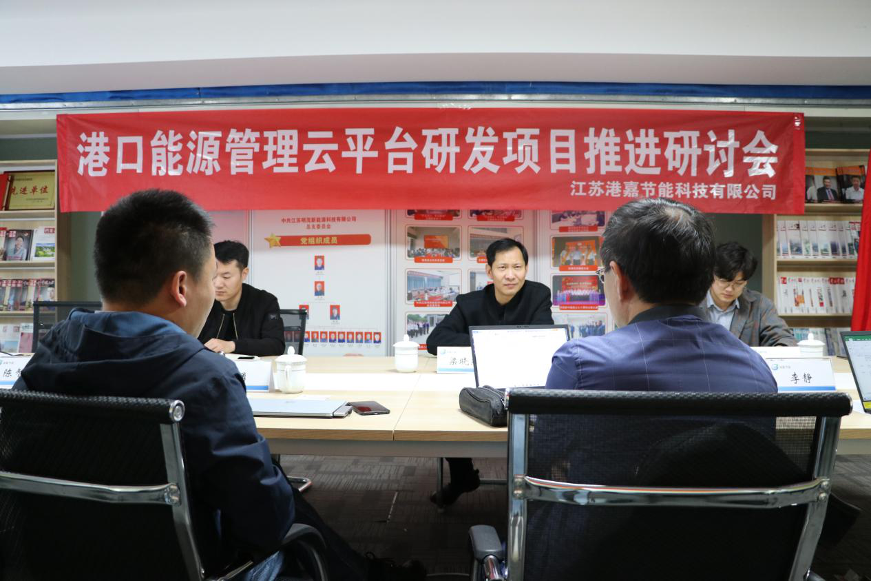 為深入了解“港口能源管理云平臺(tái)”研發(fā)項(xiàng)目情況、增進(jìn)信息互通,確保項(xiàng)目順利推進(jìn),4月15日下午,江蘇港嘉節(jié)能科技有限公司召開“港口能源管理云平臺(tái)研發(fā)項(xiàng)目推進(jìn)研討會(huì)”。交通運(yùn)輸部水運(yùn)科學(xué)研究院室主任李靜、首席研究員饒京川,江蘇交控智慧城市技術(shù)有限公司總經(jīng)理李勇、副總監(jiān)陳智威、解決方案經(jīng)理李雷等專家參加會(huì)議。港嘉公司總經(jīng)理梁小民主持會(huì)議。