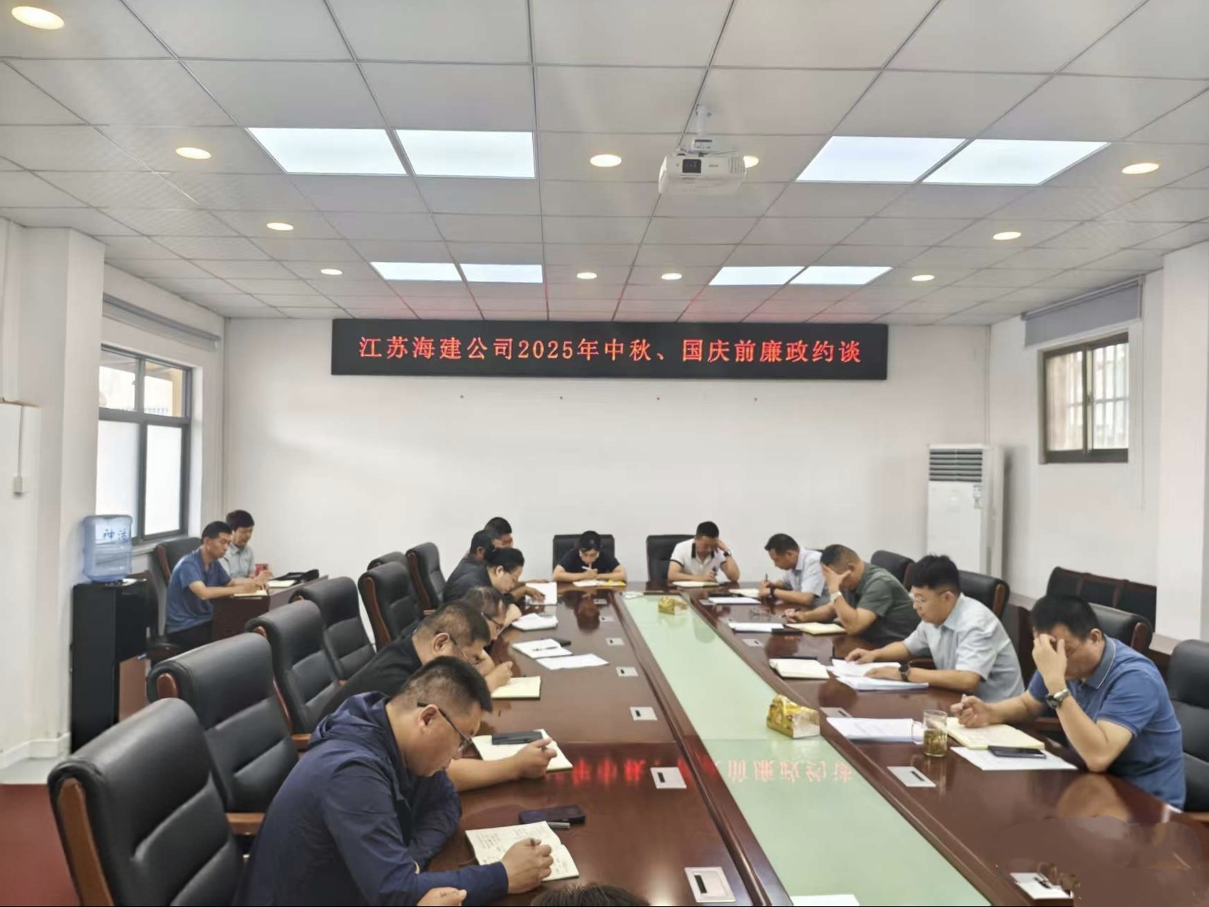 中秋、國慶“雙節(jié)”將至,為營造風清氣正的節(jié)日氛圍,強化節(jié)日期間的黨風廉政建設(shè),9月16日上午,江蘇海建公司召開中秋、國慶節(jié)前廉政約談會議,公司黨委書記、董事長于振國作節(jié)前集體廉政談話,公司領(lǐng)導班子及公司中層正職干部參加會議。