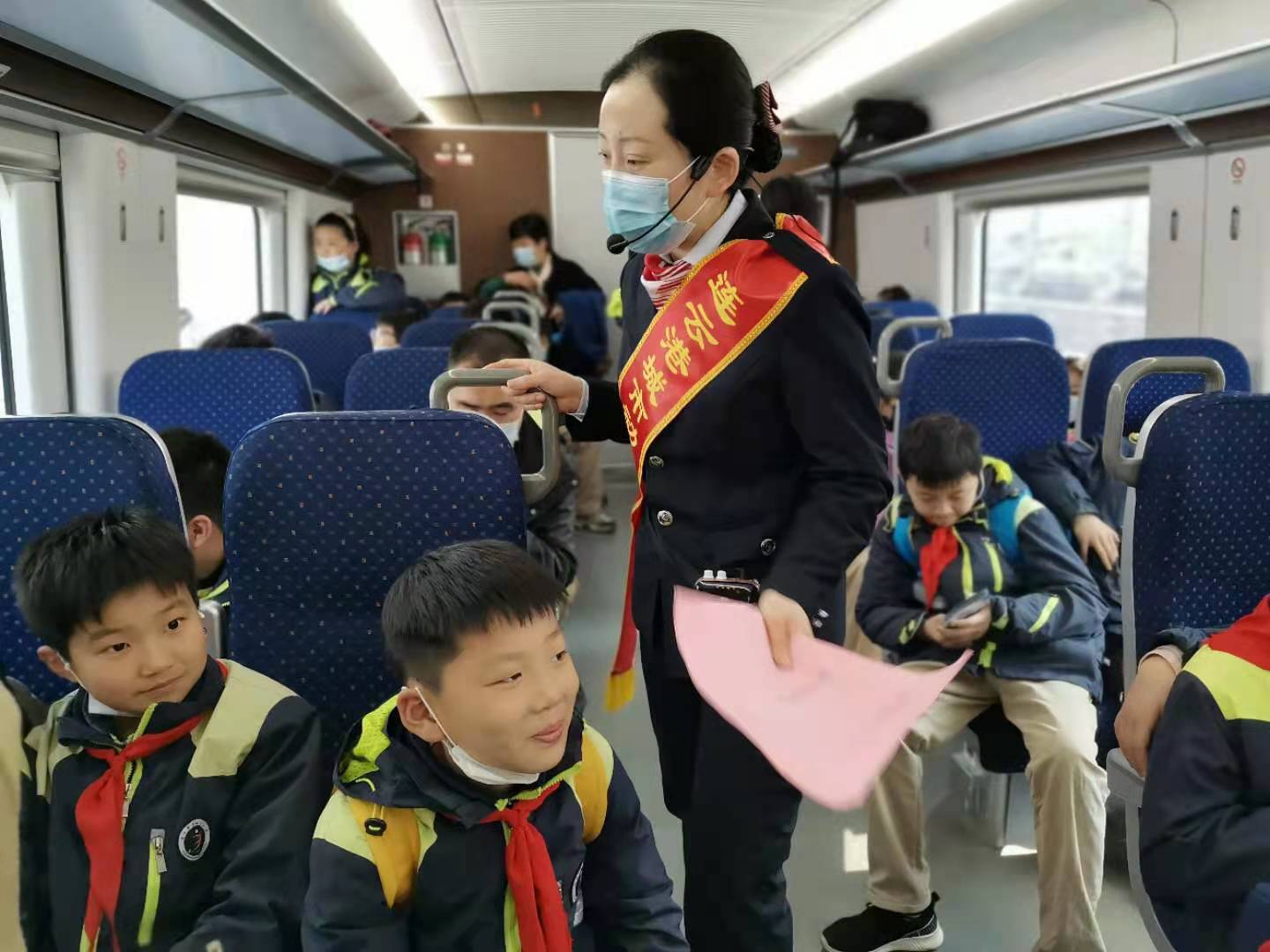 近日,墟溝小學(xué)的師生們整裝待發(fā),來到城市動車墟溝站,體驗(yàn)城市動車舒適快捷。城市動車站務(wù)員們熱情接待了他們,站務(wù)員給同學(xué)們介紹了墟溝站的概況,尤其是墟溝站的頂棚設(shè)計(jì)采用起伏多變的波浪造型,它象征著“星辰大?!?,體現(xiàn)港城特色的海洋文化。同學(xué)們在月臺等候列車時,看見列車駛?cè)胝九_,同學(xué)們沸騰了,大聲說到:“美猴王踏著祥云向我們飛來了。”在車上,站務(wù)員們?yōu)橥瑢W(xué)們講解了城市動車的概況、乘車禁止攜帶的危險品及高鐵、動車、普速列車的區(qū)別。高鐵是以G開頭的車次,動車是以D開頭的車次;高鐵時速是在300公里以上,動車時速是在200公里以上;高鐵使用的是專用鐵軌,動車使用的既可以是高鐵專用鐵軌,也可以是經(jīng)過改裝的普通鐵軌;高鐵可以稱作專線,設(shè)置的站臺很少,動車全線設(shè)置,站臺較多;動拖比不同,高鐵屬于強(qiáng)動力分散型,動車屬于弱動力分散型;動車比普速列車速度快是因?yàn)閯恿Σ煌?,動車是無牽引力軌道車輛,裝配有驅(qū)動車輪;而普速列車是由一至三節(jié)機(jī)車牽引若干車廂或車皮組成。同學(xué)們聽完講解,熱情高漲,并與站務(wù)員相互交流。在不知不覺中,列車已經(jīng)到達(dá)了終點(diǎn)站連云站。墟溝小學(xué)張校長講,通過這次活動不僅讓同學(xué)們感受到了城市動車的舒適快捷,也豐富了同學(xué)們的課外知識,并為你們熱情服務(wù)和業(yè)務(wù)素養(yǎng)點(diǎn)贊。