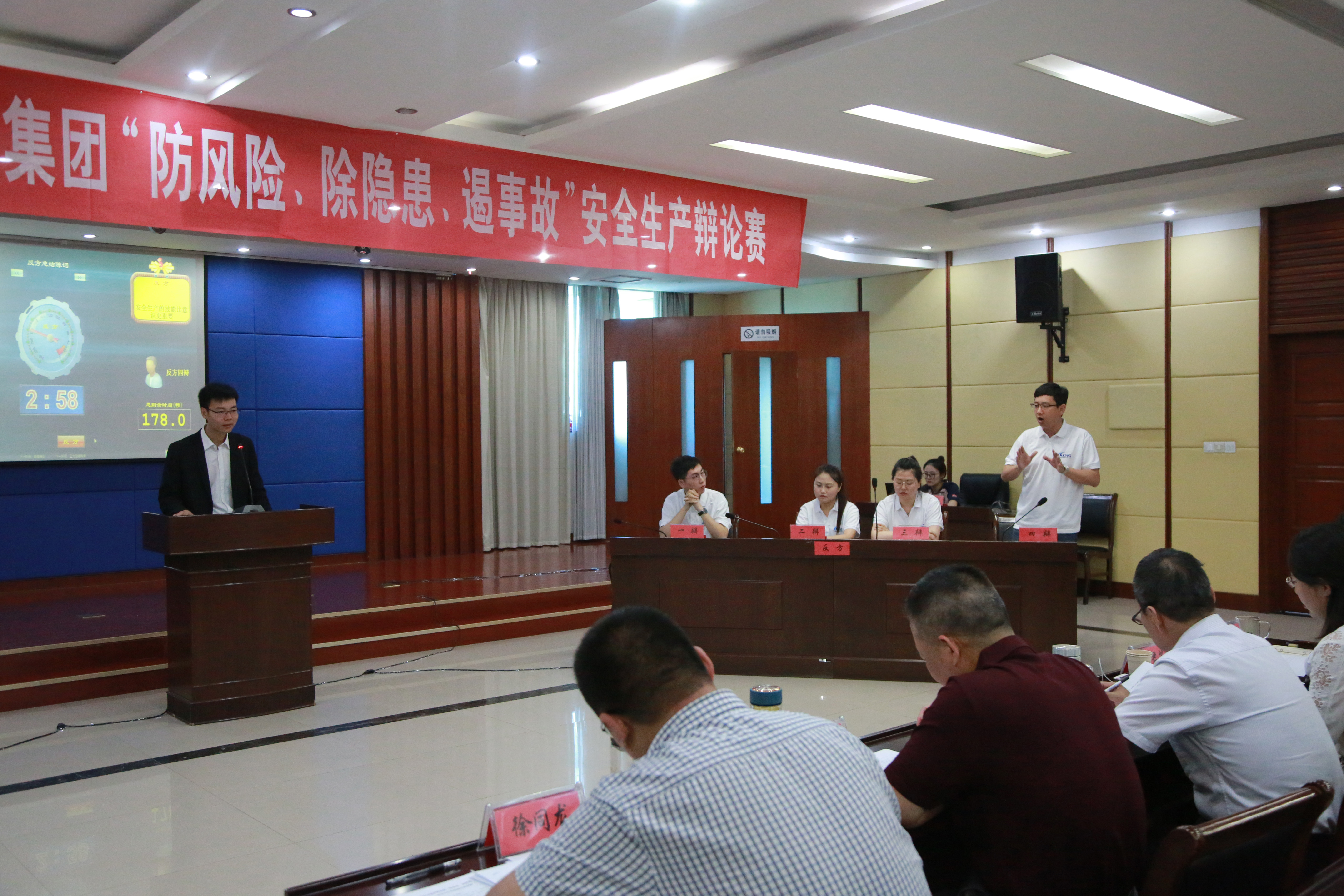 5月29日,交通控股集團(tuán)開(kāi)展的“防風(fēng)險(xiǎn)、除隱患、遏事故”安全生產(chǎn)辯論賽在七樓會(huì)議室成功舉辦。本次辯論賽共有六支代表隊(duì)參加,集團(tuán)及權(quán)屬企業(yè)相關(guān)領(lǐng)導(dǎo)出席本次比賽并擔(dān)任評(píng)委。