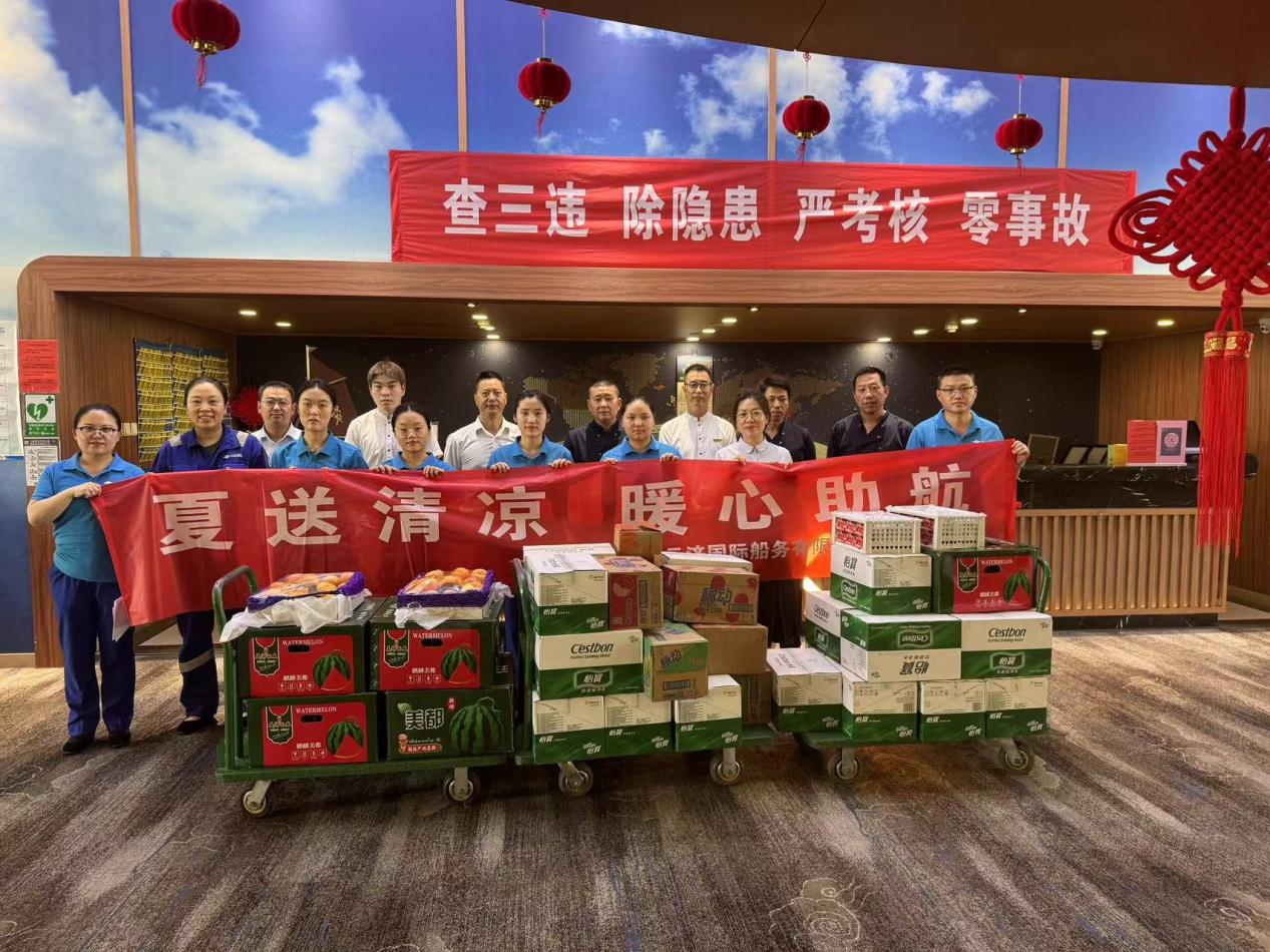 7月24日,云濟(jì)船務(wù)公司開展“夏送清涼,暖心助航”夏日送清涼慰問活動(dòng),將關(guān)懷與清涼精準(zhǔn)送達(dá)“和諧云港”輪全體在崗乘務(wù)員身邊。